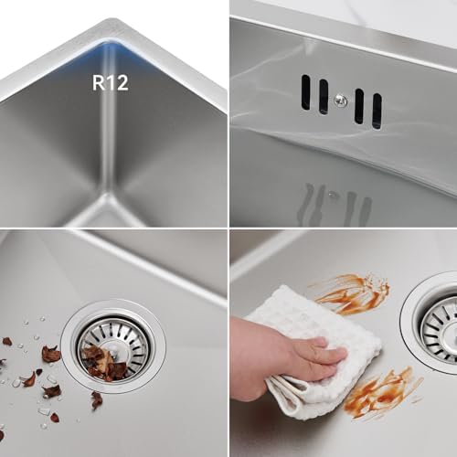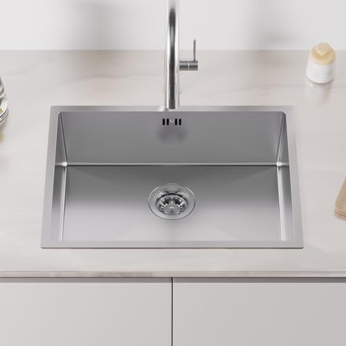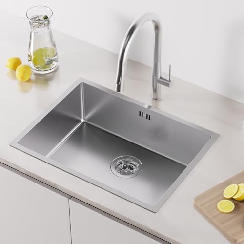 fregadero de cocinafregadero de cocina Fregadero grande de un seno Fregadero bajo encimera 60 cm x 44 cm, acero inoxidable