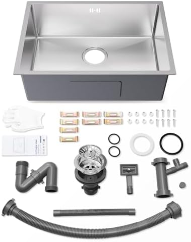 SUMINISTRO: Fregadero de cocina, desagüe y rebosadero con tubo ahorra espacio, válvula de cesto y abrazaderas de fijación. Para facilitar la instalación, recibirás una práctica plantilla para hacer un agujero en la encimera e instrucciones detalladas.
