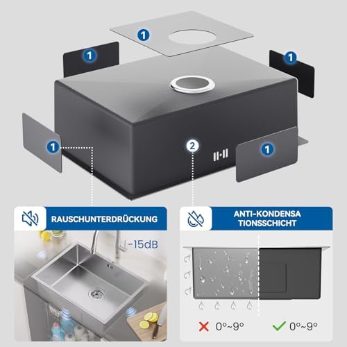 FREGADERO DE ACERO INOXIDABLE: Este fregadero de encastre está fabricado en acero inoxidable 304, por lo que ofrece ventajas como la resistencia a la corrosión y al calor. Gracias a sus perfectas propiedades higiénicas, los alimentos pueden entrar en contacto directo con este fregadero. El acero inoxidable nanocepillado es ideal para prevenir rayones y manchas. Las manchas de agua y las huellas dactilares no tienen ninguna posibilidad aquí.