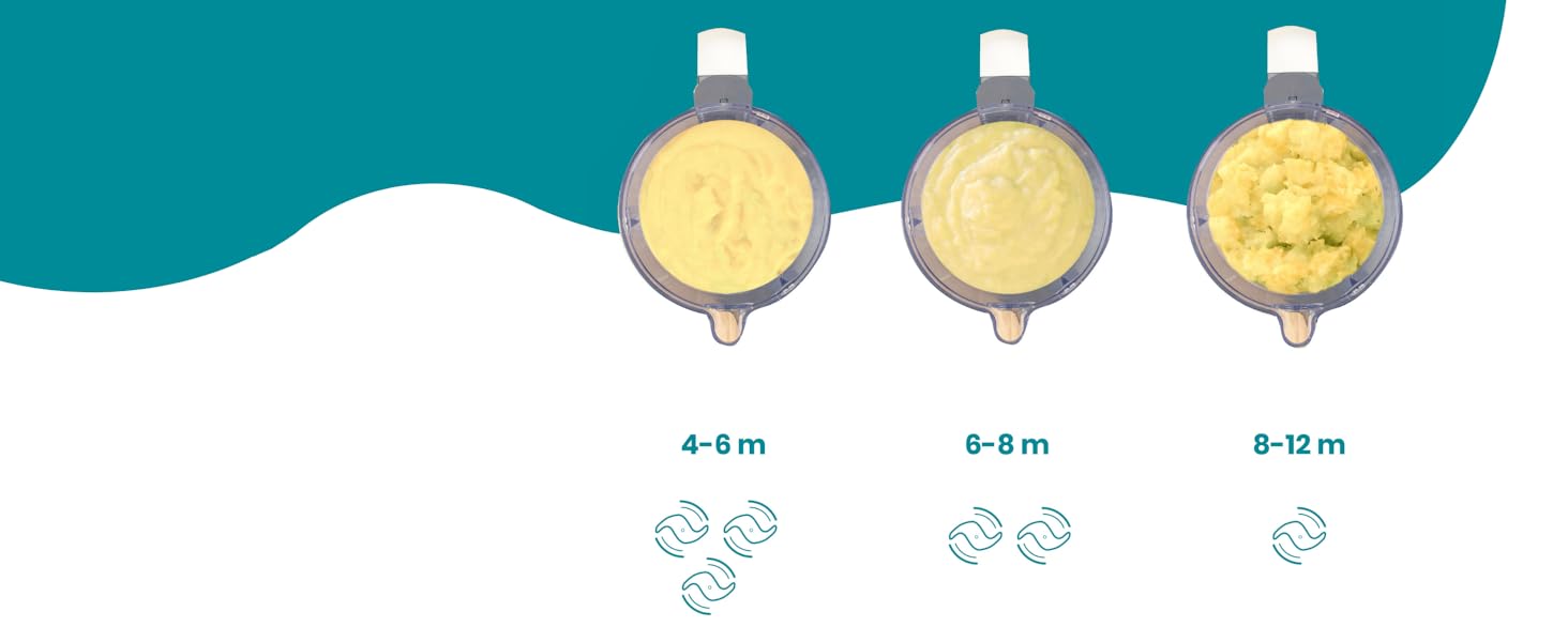 EVOLUTIVO: haz disfrutar a tu bebé de platos adaptados a la diversificación. Con sus 3 velocidades de batido y su recuperador de jugo de cocción, ajustarás la textura según la edad de tu bebé