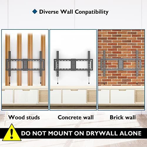 Construcción robusta y segura: fabricado con acero laminado en frío reforzado con un acabado en polvo negro, este soporte de pared para TV es extremadamente resistente y duradero. La tecnología resistente al óxido y las hebillas de acero permiten un uso prolongado.
