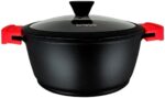 ALUMINIO FUNDIDO: Juego de ollas, fabricadas en una sola pieza de aluminio fundido. Ofrece un diseño innovador y elegante con recubrimiento exterior integral en color negro e interior con moteado blanco tipo piedra con un gran nivel de acabado. Son robustas y resistentes a abrasiones y arañazos, ideales para uso diario e intensivo.