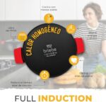 INDUCCIÓN: Su fondo multicapa Full Induction de gran espesor hace que se caliente rápidamente y distribuye el calor de manera uniforme lo que facilita un cocinado eficiente y perfecto incluso a potencias medias. Reduce el tiempo total de cocción por lo que ahorra energía y dinero.