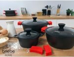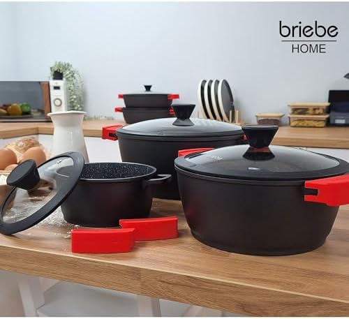 briebe Batería Cocina Inducción 6 Piezas, Juego 3 Ollas Aluminio Fundido,