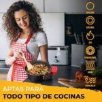 Aptas para todo tipo de cocinas: Vitrocerámica, Eléctrica, Gas e Inducción. También es apta para horno, utilizándola sin tapa ni asas.