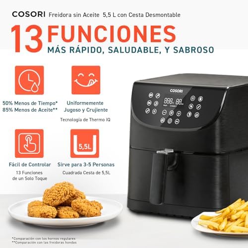 Inicio Pequeño electrodoméstico Freidoras COSORI Freidora de Aire Duradera 5.5 L Air Fryer 1700W, Tecnología Rapid Air,