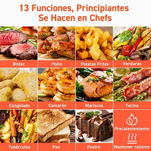 [ 𝐌𝐨𝐝𝐨 𝐝𝐞 𝐂𝐨𝐜𝐜𝐢ó𝐧 𝐅á𝐜𝐢𝐥 𝐜𝐨𝐧 𝟏 𝐏𝐮𝐥𝐬𝐚𝐜𝐢ó𝐧 ] 13 programas automáticos para facilitar la cocción; temperatura y tiempo ajustables( Hasta 205ºC y 60 Min) para satisfacer todas las necesidades de cocción.