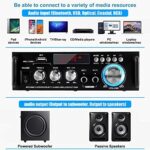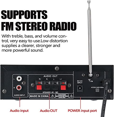 【Máximo de 600 W y Mando a distancia)El receptor amplificador estéreo de 2 canales proporciona 300 W x 2 (600 W de potencia máxima de salida de música), proporciona una calidad de sonido superior, un sonido claro y detallado. Control remoto por infrarrojo, acceso y comunicación perfecta entre la persona y el amplificador. Su funcionamiento es sencillo y fácil de utilizar, haciendo que lo ame desde el primer momento.
