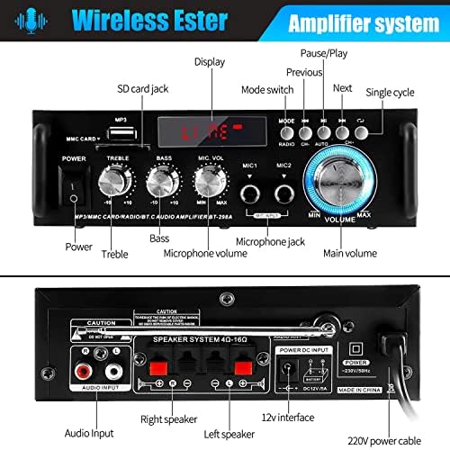【Amplificador con Sonido HIFI Auténtico)Estéreo, con volumen principal, un ajuste de agudos y otro de bajos, regulables analógicamente para controlar el amplificador. Reproduce la música de todo el mundo de una forma fidedigna, brindándole un auténtico sonido HIFI, «Nuestro BT-298A emplea un chip 7737 de alta gama importado, Fortalece la estabilidad y precisión de la señal de transmisión de audio. A diferencia de otras imitaciones en el mercado, Elija la marca Etlephe para comprar.