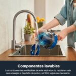 Los componentes reutilizables de esta aspiradora sólo necesitan enjuagarse cuando sea necesario.