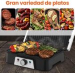 Descubre la cocina rápida y saludable con nuestra parrilla eléctrica de 2000W: perfecta para sándwiches, paninis, carnes y más. Su versatilidad y potencia te permiten preparar tus comidas favoritas de manera eficiente.