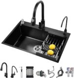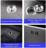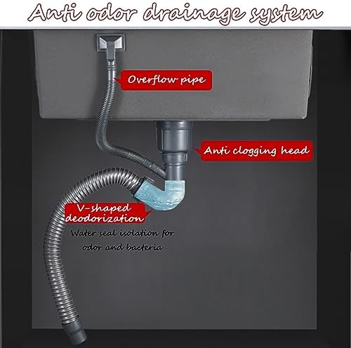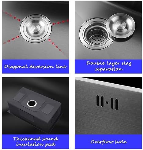 【Material de alta calidad】 – El fregadero de la cocina está hecho de acero inoxidable de alta calidad y tiene una excelente resistencia y durabilidad. El nanorrevestimiento es resistente a los arañazos, fácil de limpiar y puede soportar altas temperaturas. El exterior del fregadero de la cocina está equipado con almohadillas amortiguadoras de goma y un revestimiento anticoagulante, por lo que puede proporcionar un aislamiento acústico adicional y proteger el gabinete de la humedad y la deformación.