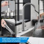 Ahorre un 30 % de agua: elemento filtrante cerámico de alta calidad seleccionado y burbujeador, descarga de agua amortiguadora silenciosa, suave y espumosa, sin salpicaduras de agua, ahorro de agua de hasta un 30 %; Y con dos modos de descarga de agua, espuma y spray, puedes completar fácilmente diversas tareas de cocina. Tarea de lavado.