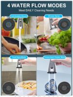 (Grifo de fregadero de cocina con 4 modos): nuestra boquilla rociadora para grifo de cocina tiene 4 modos, agua de burbujas, rociador de ducha, adecuada para lavar verduras y frutas, llenado de agua o lavado de manos, puede evitar salpicaduras; agua de doble cuchilla y agua de racimo, fuerte flujo de agua, perfecto para lavar los platos después de la cena, o incluso para lavar las maquinillas de afeitar; Adecuado para una variedad de necesidades de limpieza de cocinas, ahorrando tiempo y energía.