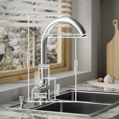 Fácil de manejar: diámetro del orificio de instalación adecuado: 35 mm. Este grifo mezclador de cocina totalmente equipado es fácil de instalar y solo le llevará unos minutos configurarlo.