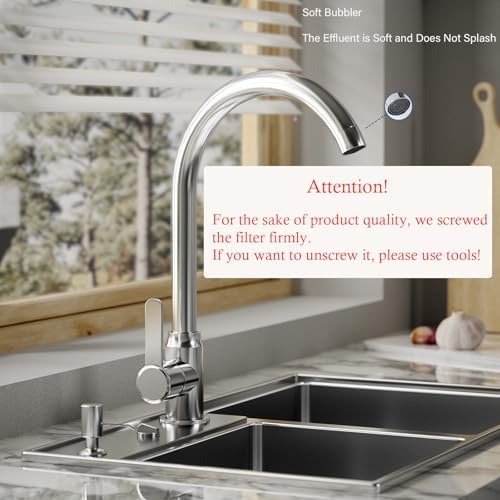 Grifo para fregadero de cocina a prueba de salpicaduras: nuestro grifo para fregadero de cocina viene con ABS de alta calidad y cartuchos de cerámica duraderos para evitar que el agua salpique del fregadero durante el uso. Te da una sensación de seguridad y comodidad durante su uso.