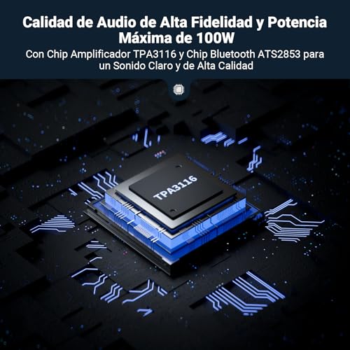 Chip amplificador TPA3116 clase D integrado. Un chip amplificador superior que mejora la claridad del sonido y el rendimiento general del audio.