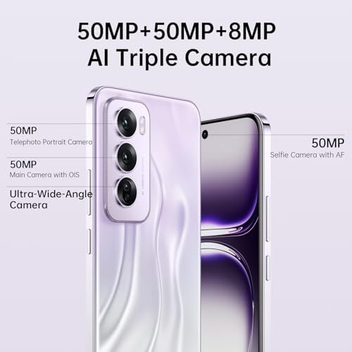 【50MP+8MP+50MP Cámara AI&AI Best Face)La cámara trasera AI del smartphone está equipada con 3 cámaras, la cámara principal de 50MP con función OIS te permite tomar mejores fotos. Ya sea el precioso selfie con tu ídolo o un momento mágico irrecuperable, antes era un desastre si parpadeabas al hacer la foto. ¡Ahora tus ojos se abren mágicamente con un solo clic gracias a la IA!