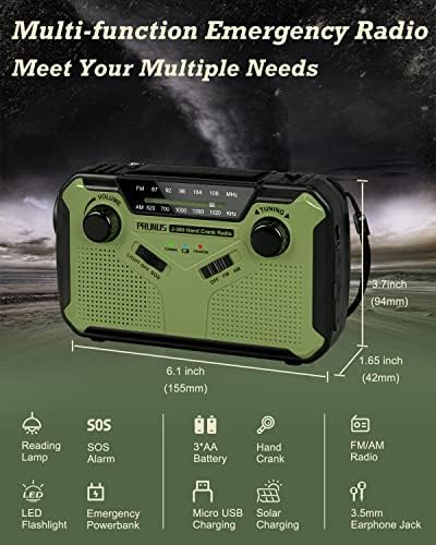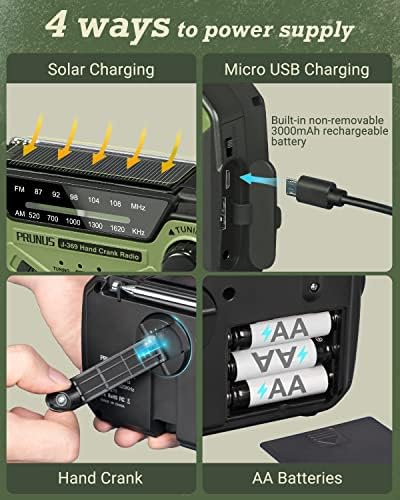 Inicio Audio y Hify Radios PRUNUS J-369 Radio Solar y a Pilas, Radio Emergencia con Manivela, Am FM SW