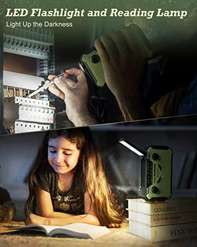 【De gran ayuda en caso de emergencia)Equipada con una función de alarma SOS, la radio con dinamo es ideal para actividades al aire libre como acampadas o escalada. Cuando esté en problemas, en peligro o en una emergencia y nadie lo sepa, cambie al modo SOS. La radio emitirá una alarma y parpadeará para llamar la atención de los demás, por lo que recibirá ayuda a tiempo.