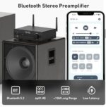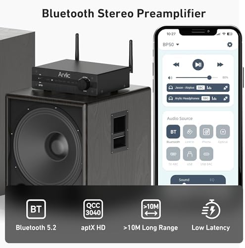 Interfaces ricas: Arylic BP50 viene con interfaces ricas para dispositivos actuales que incluyen RCA analógico, óptico digital, HDMI ARC, entrada Phono y USB, adecuado para teléfonos inteligentes, tabletas, computadoras portátiles, TV, grabadora de vinilo (tocadiscos), Xbox, decodificador y más. BP50 también viene con salida de subwoofer para subwoofer activo externo para más graves.
