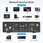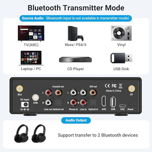 Dé vida a su sistema de cine en casa: el BP50 utiliza la tecnología de chip Bluetooth aptx HD de Qualcomm para admitir la transmisión inalámbrica de audio HD Bluetooth 5.2, lo que le permite conectar hasta 2 dispositivos compatibles con Bluetooth para recibir y transmitir de forma inalámbrica al mismo tiempo. Puede transmitir música de alta calidad desde su teléfono móvil, ordenador o cualquier otro reproductor de música con Bluetooth a cualquiera de sus sistemas estéreo domésticos.