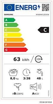 1 Probado según los estándares IEC 60456-2010 carga de lavado de 4 kg Lavado Super Eco en frío (WF80F5E5U4W) en comparación con el ciclo de algodón a 40 °C sin Eco Bubble (WF0702WKU). Los resultados individuales pueden variar