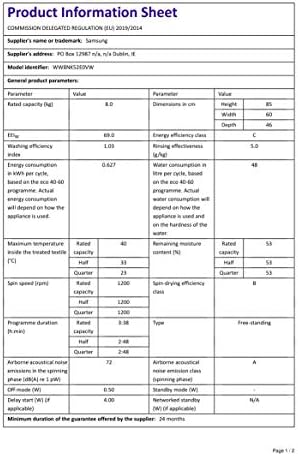 9 Generalmente, el nivel de reducción del ruido es de 5 dBA y 3 dBA para el ciclo de lavado y centrifugado. Datos basados en la etiqueta ERP, F500 8 kg, 1400 rpm WF80F5E5P4W con motor digital inverter y Vistula 8 kg 1400 rpm WF1804WPC con motor universal.