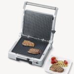 Parrilla interior: la pequeña parrilla eléctrica es ideal para disfrutar de una verdadera parrillada en casa. El doble plato garantiza un tostado uniforme sin necesidad de girarlo.