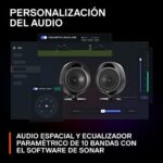 Personalización de audio – Mejora la experiencia de audio ajustando casi todos los aspectos del sonido con el software Sonar, utilizando un ecualizador paramétrico de 10 bandas, audio espacial para la simulación de sonido envolvente y mucho más.
