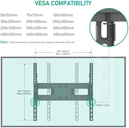 Compatibilidad universal: Compatible con televisores de 32″ a 60″ y soporta hasta 45kg/99lbs. Compatible con patrones VESA desde 50x50mm hasta 400x400mm.